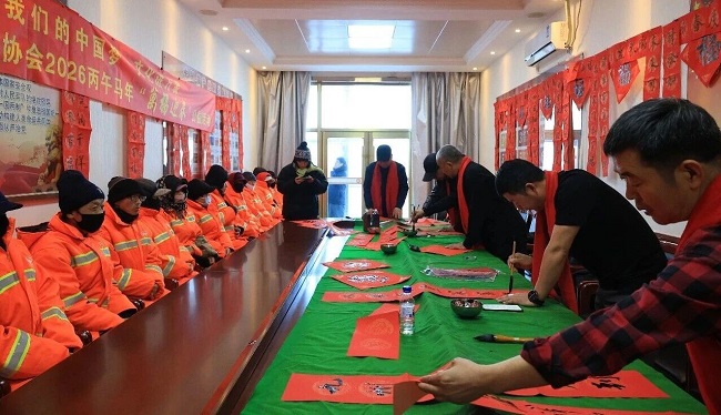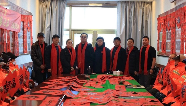 此次送春联活动是洮南市委社会工作部“暖冬同行 新春送福”志愿服务活动之一,也是市文联书法家协会2026丙午马年“万福迎春”公益活动、市司法局“新春递温情 法治护新业”专项行动之一。活动当天,市社工部、市司法局工作人员与书法家们满怀热忱,带着新春祝福,先后来到洮南市环卫处,富文街道富兴社区及光明街道光照、光大、光华社区,向环卫工人、外卖骑手等新就业群体劳动者及辖区居民拜年。