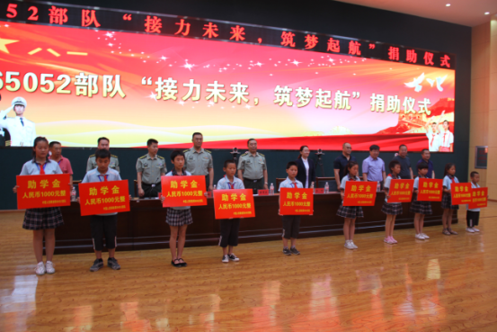 2018年 6月13日,65052部队举行“接力未来,筑梦起航”捐助仪式暨军营开放日活动,为驻地学校捐赠了图书和文化用品等物资,为该校10名贫困学生助学捐款1万元。