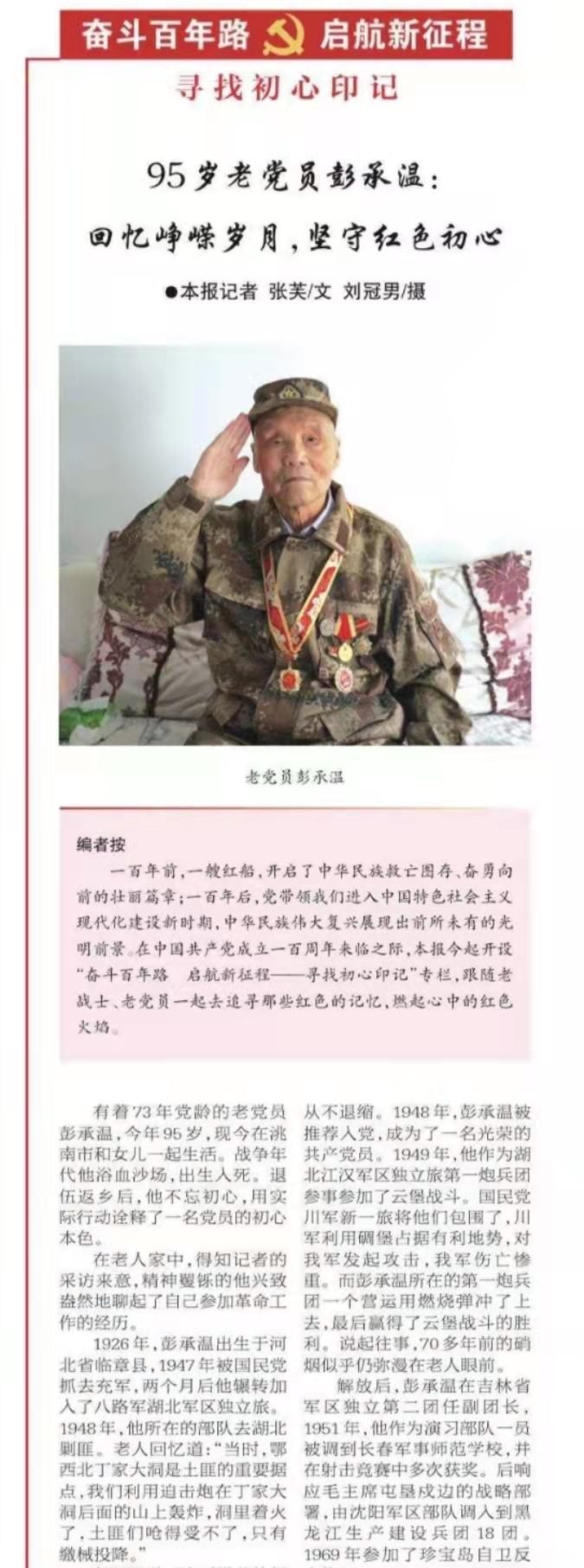 我局通过网站、微博、“不忘初心、亮剑追梦”微信公众号,对局工作动态、退役军人相关政策和通知公告等内容进行宣传。积极向国家、省、市宣传媒体投稿,2021年在《中国双拥》杂志发表文章4篇,省级平台发表文章5篇,白城地区发表16篇,洮南市发表10篇。积极开展2021年“情系最可爱的人”系列主题宣传活动,抗战老兵宋登岭被省厅重点宣传,抗战老兵李景武、参战老兵殷振福、彭承温、优秀退役军人侯锋被吉林日报、白城日报、指尖白城、洮南市电视台重点宣传。