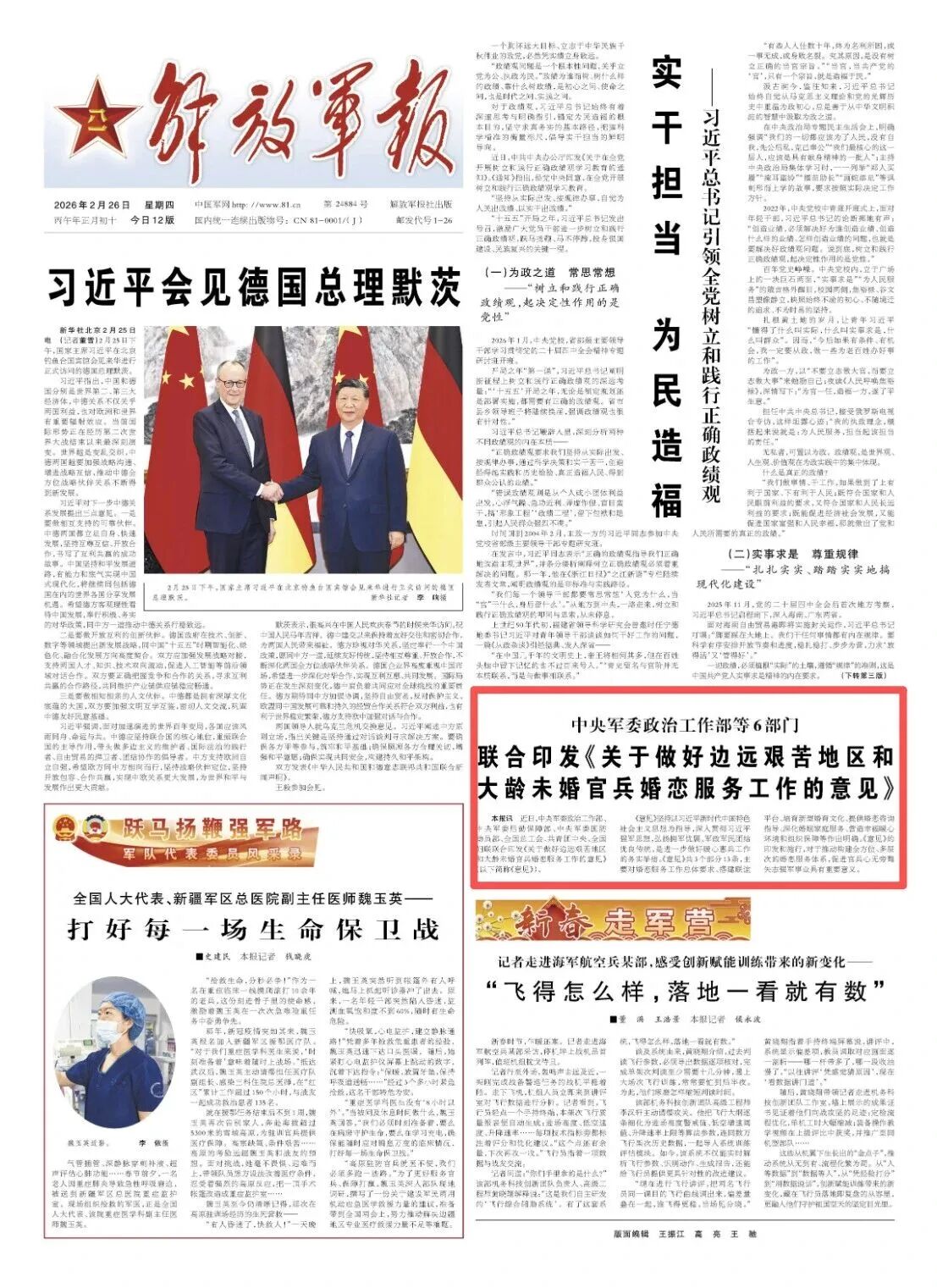 近日,中央军委政治工作部、中央军委后勤保障部、中央军委国防动员部、全国总工会、共青团中央、全国妇联联合印发《关于做好边远艰苦地区和大龄未婚官兵婚恋服务工作的意见》(以下简称《意见》)。